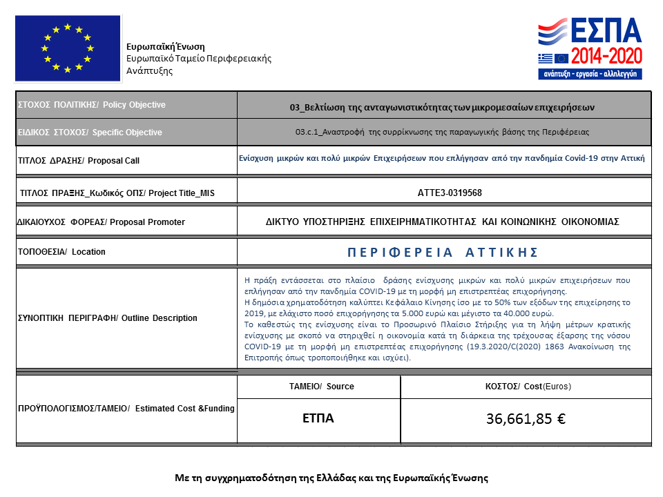 Ενίσχυση μικρών και πολύ μικρών Επιχειρήσεων που επλήγησαν από την πανδημία Covid-19 στην Αττική